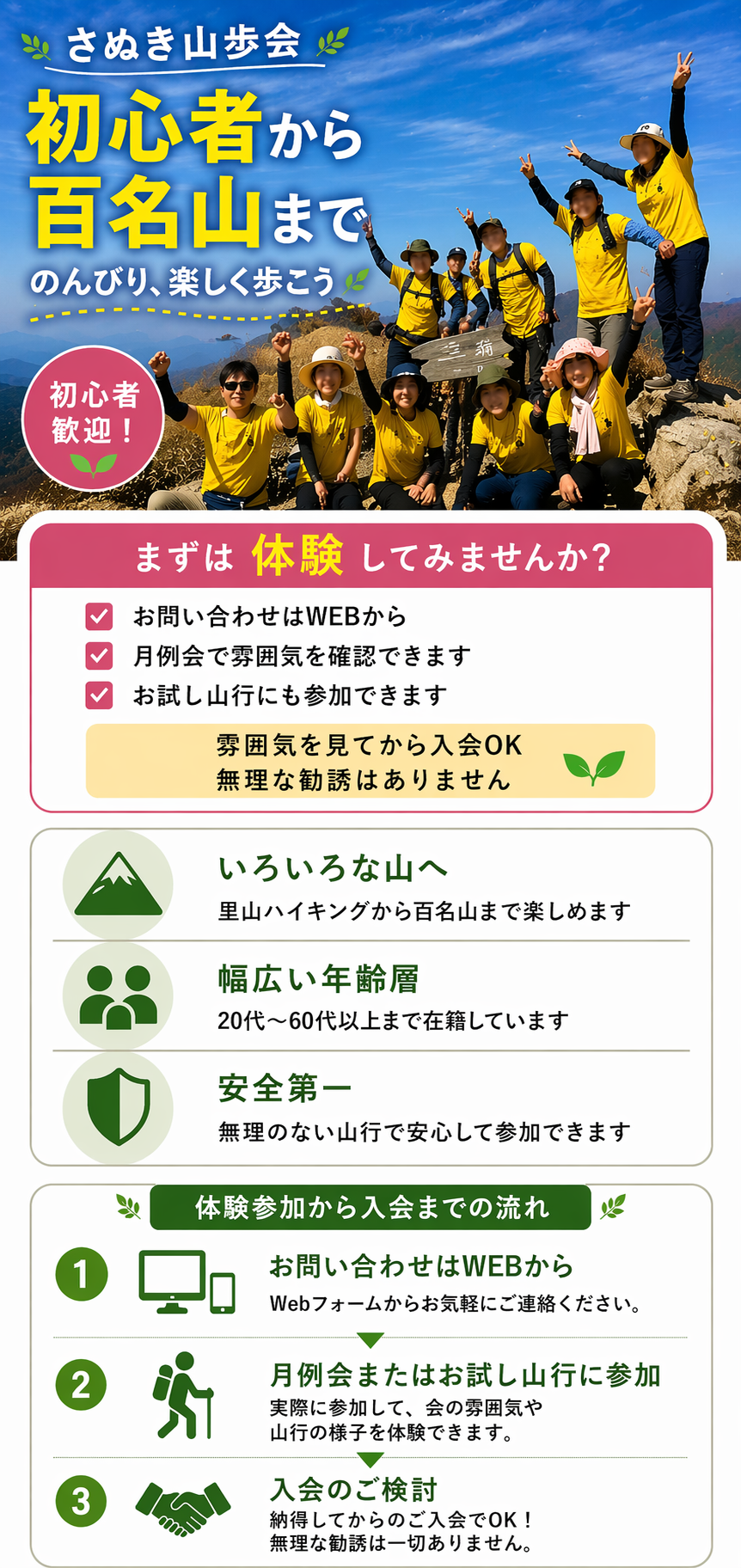 ✓登山未経験からスタートした方