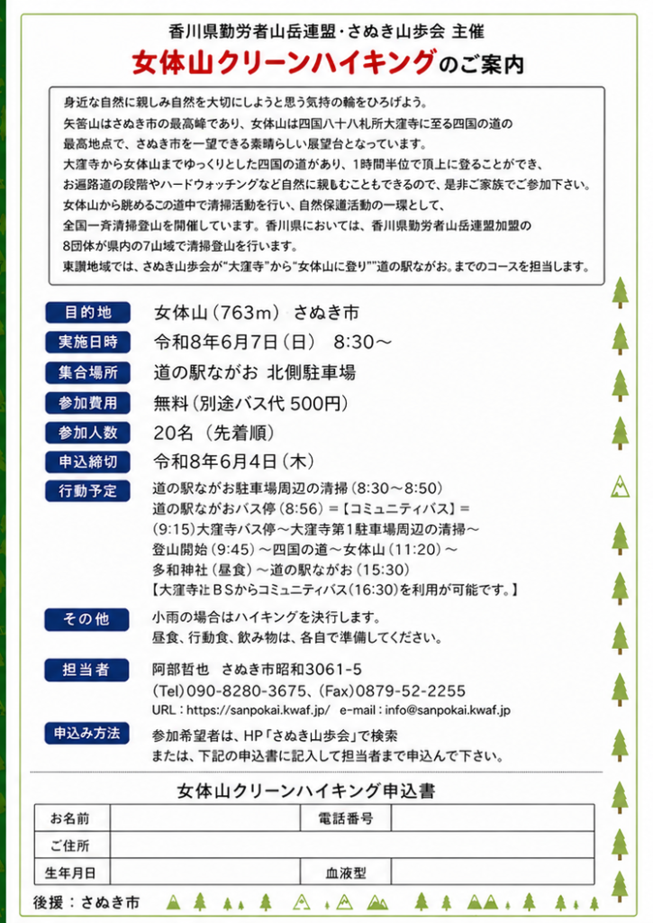 2026年6月7日女体山クリーンハイク