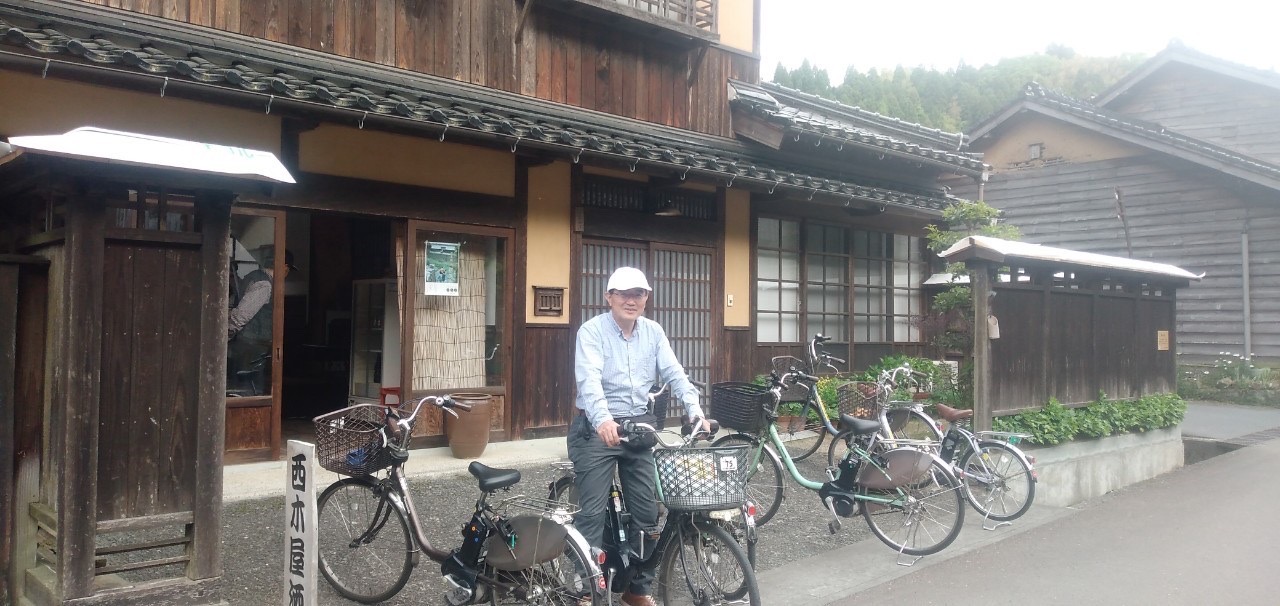 龍源寺間歩まで3.5km有るので、電動自転車をレンタルしました。