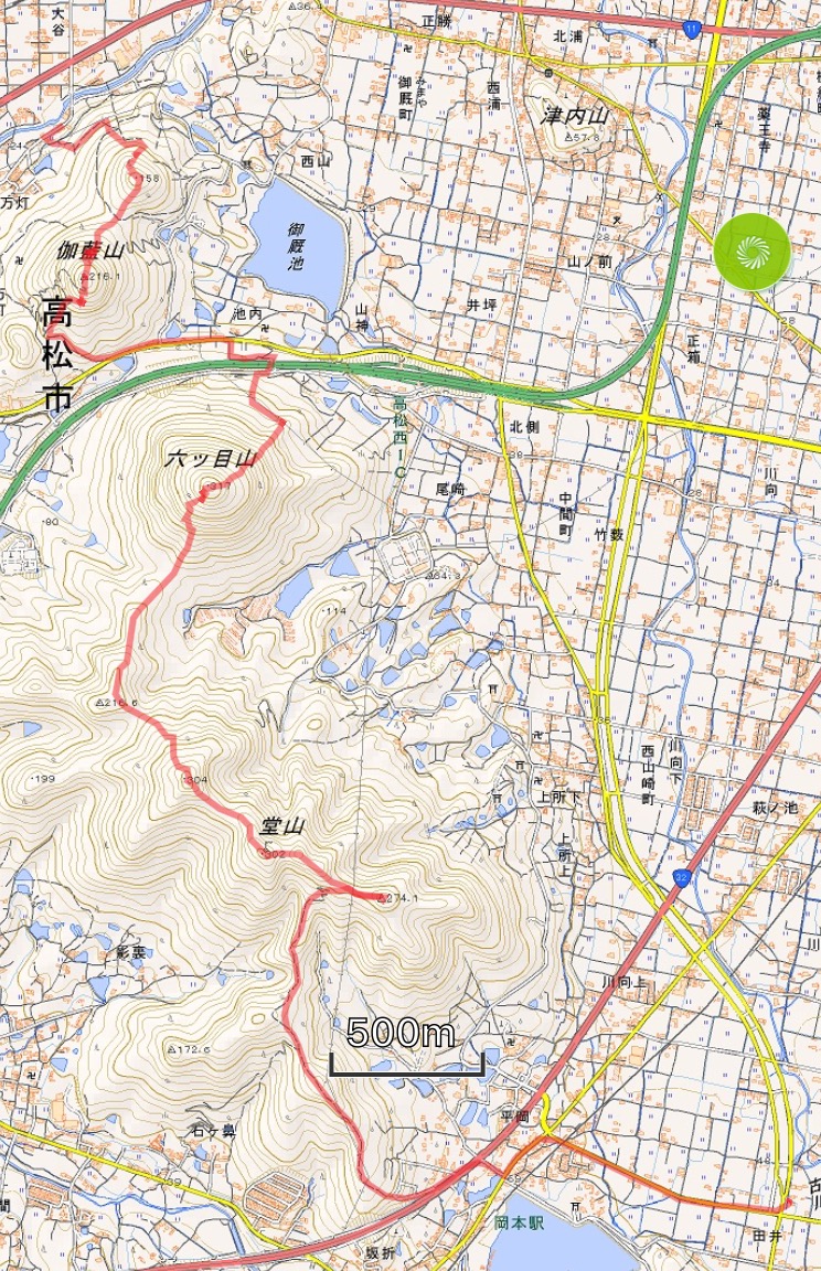 佐藤畳店(9:30)〜(9:50)岡本登山口(9:55)〜(10:30)堂山展望台(10:40)〜