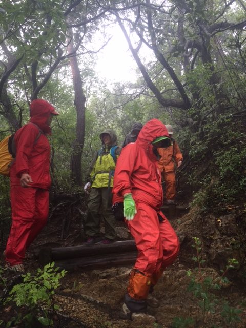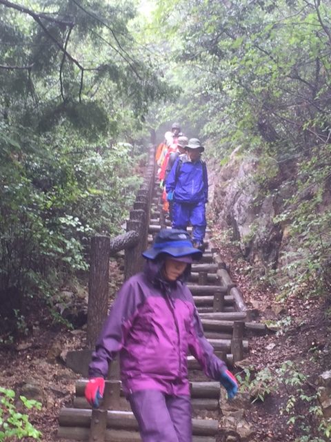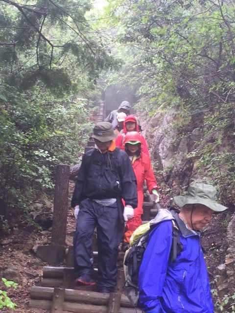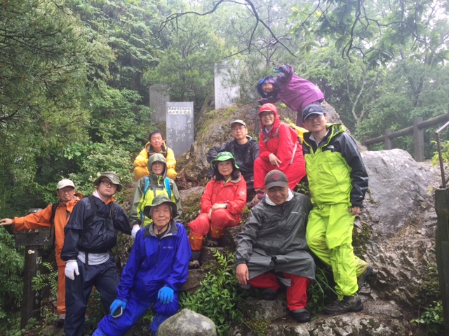 合戦尾根の頭辺りで雨が降ってきたので、雨具を着用しての行動となりました。