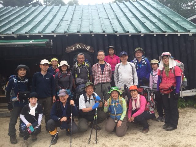 7/16 中房温泉に8時頃到着、曇り空になっています。合戦小屋までトイレが無いので全員が用達しを済ませていざ出発です。