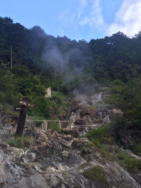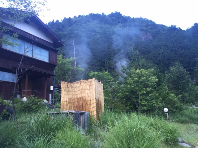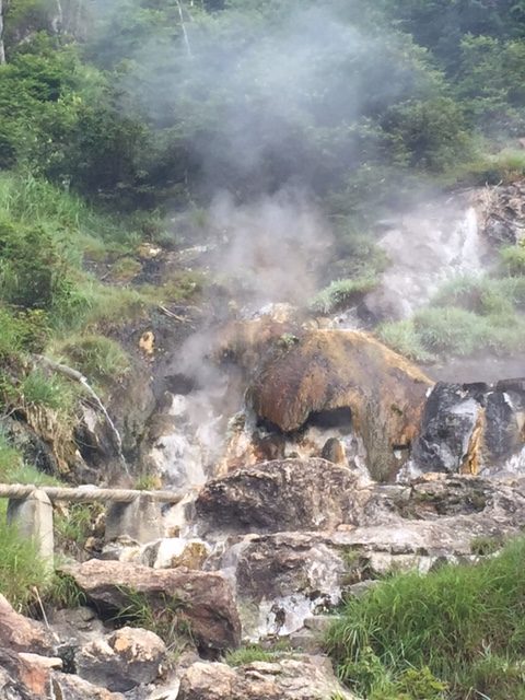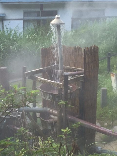 源泉は90度!このままでは入浴できないので、手前のムロには、温泉を自然落下させて冷ます装置が各所に設置されています。