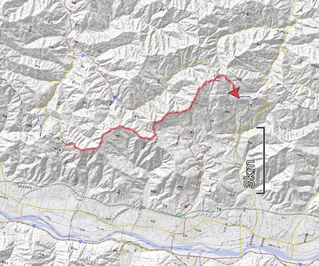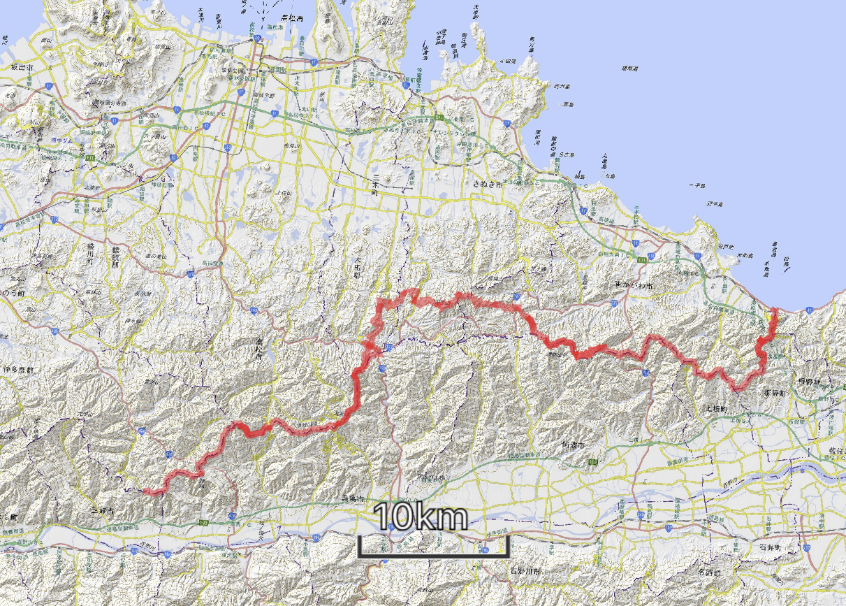 これで、讃岐山脈香川県東端(坂元)〜大坂峠〜大阪越〜大山〜女体山〜矢筈山〜高仙山〜中山峠〜大相山〜大滝山〜竜王山〜滝の奥までが繋がりました。