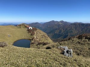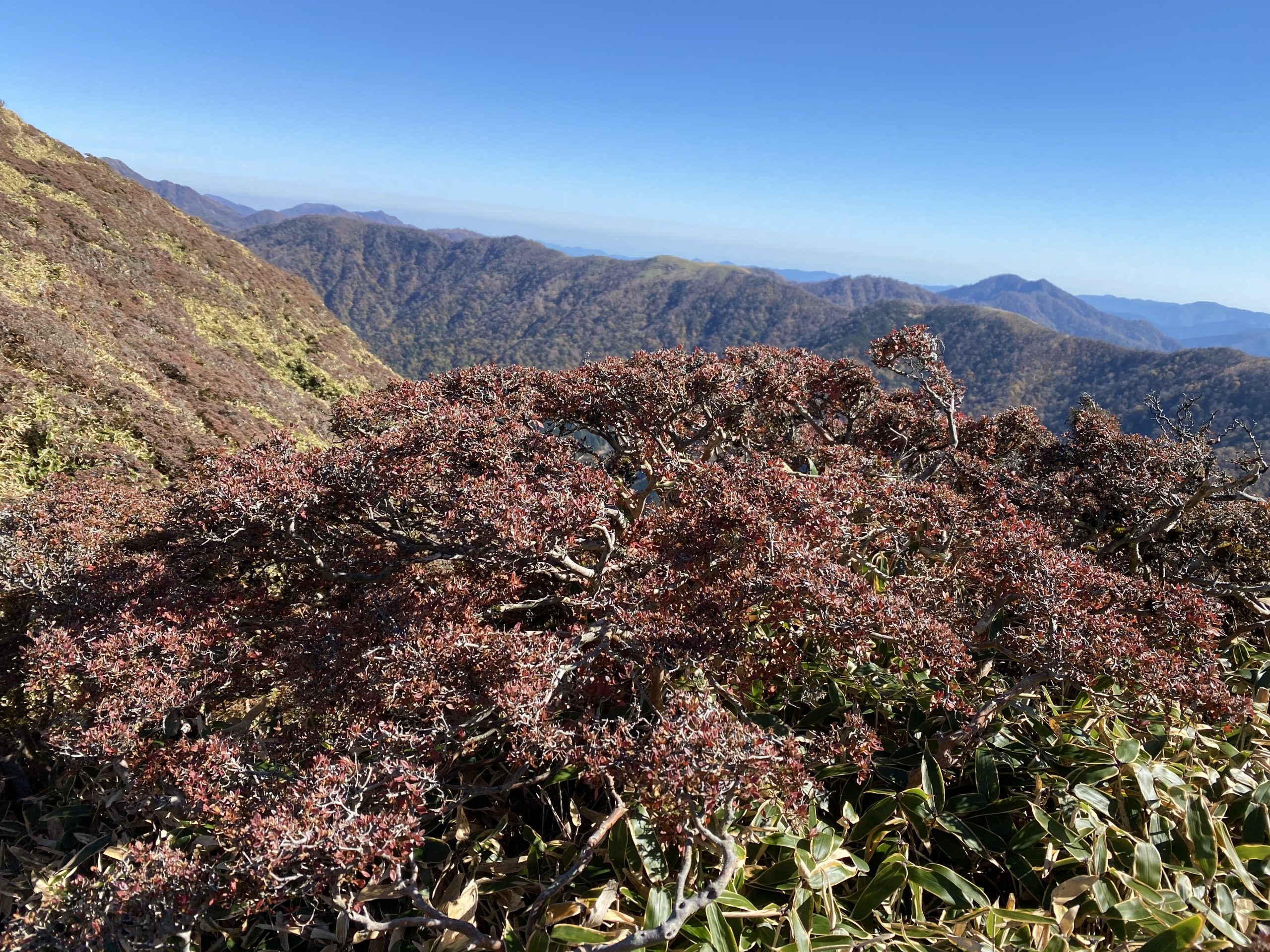 秋晴れの良い天気になり、三嶺から剣山を始め360度素晴らしい展望と紅葉を満喫することが出来ました。