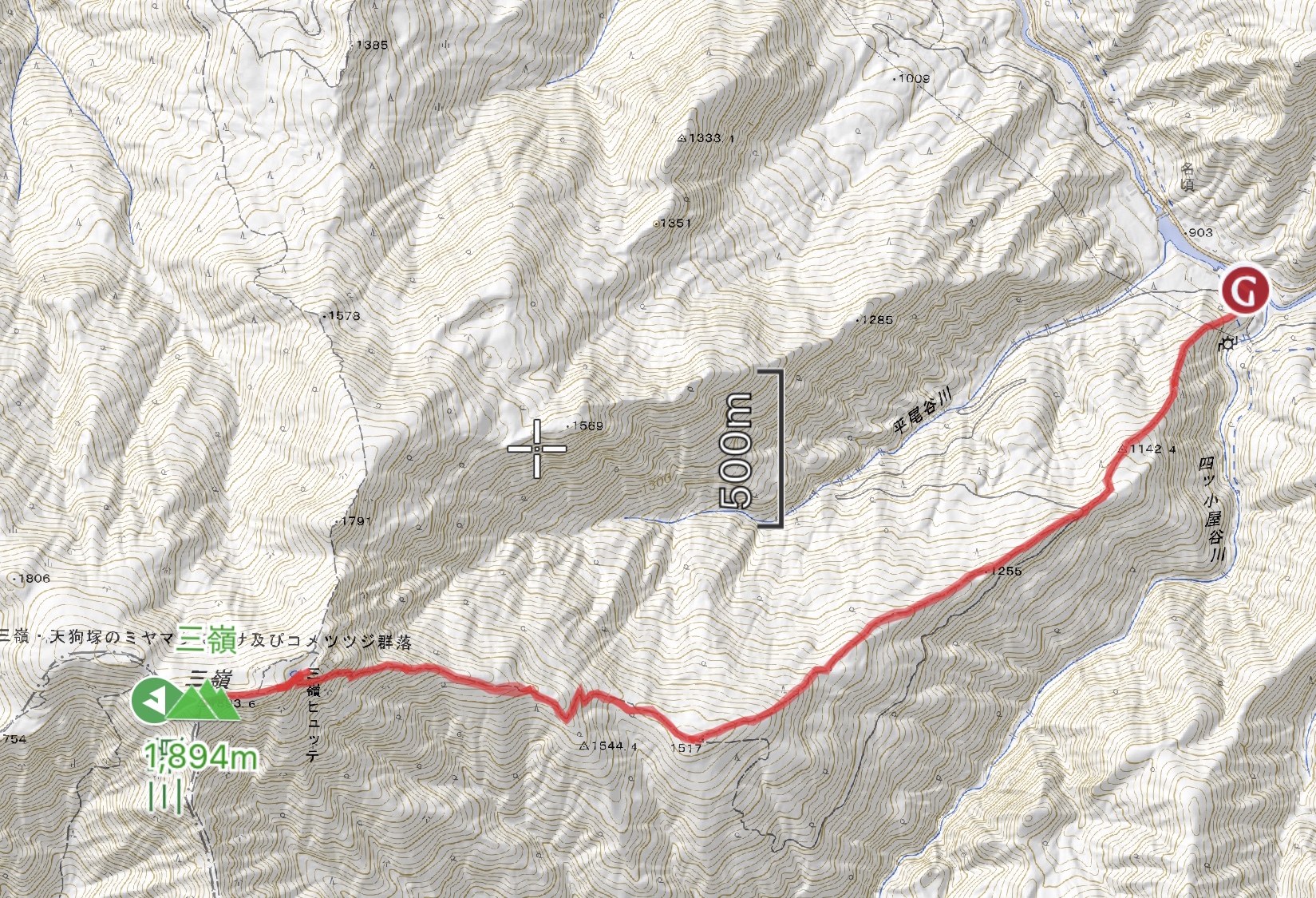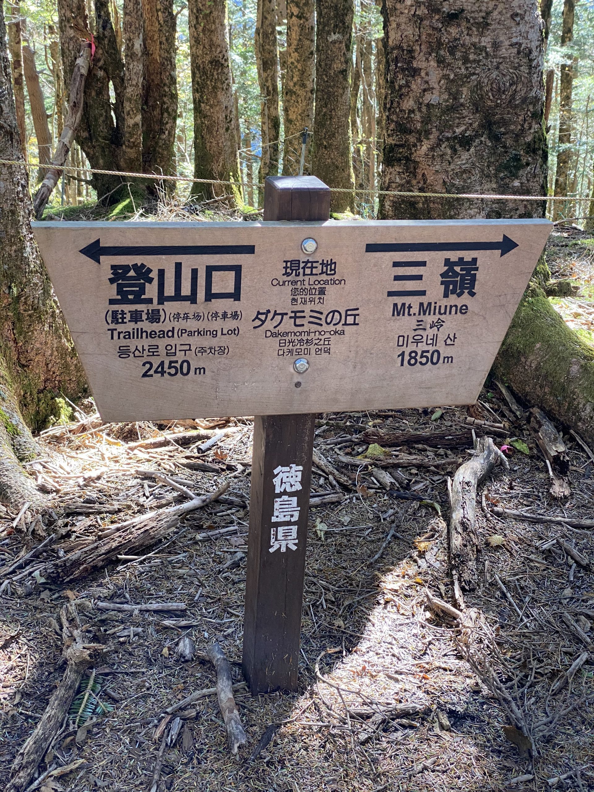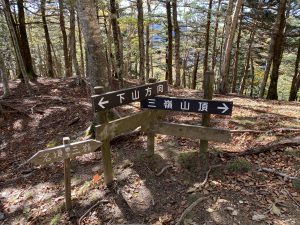 8:00名頃登山口8:15~9:10林道合流点9:15~10:10ダケモミの丘10:20~12:00三嶺12:45~~14:20ダケモミの丘14:25~15:45名頃登山口