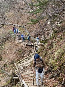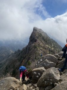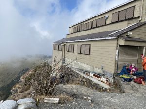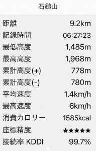 土小屋登山口8:35~9:35第二ベンチ9:40~10:50二の鎖小屋11:10~11:50弥山(石鎚神社奥宮)12:05~三ノ鎖小屋12:30~14:45土小屋登山口