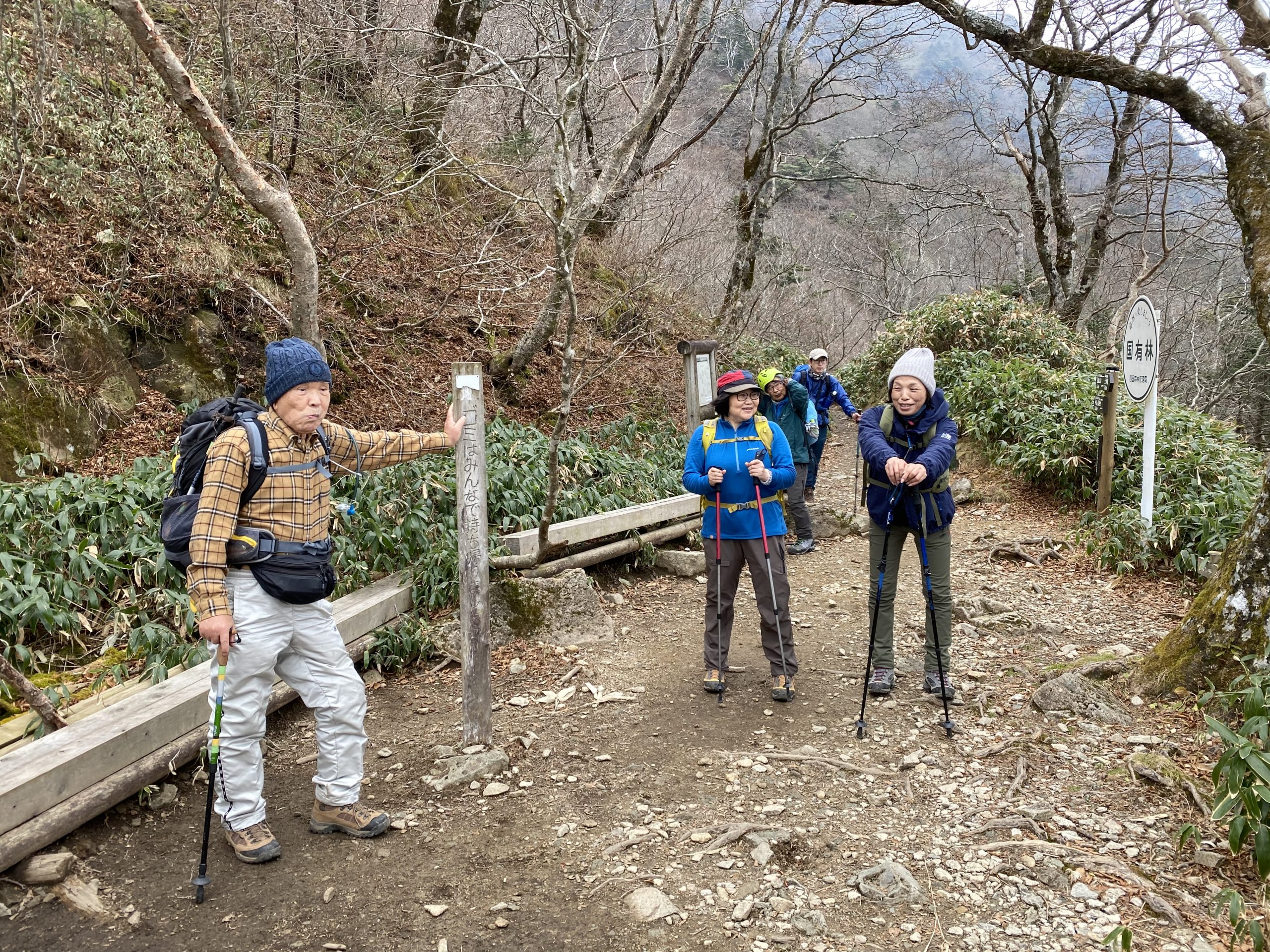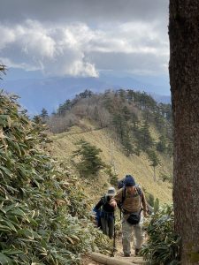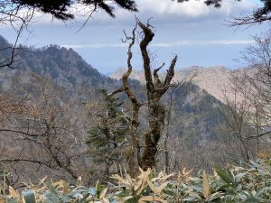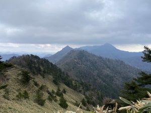 時折ガスが切れると視界が開け展望でき、瓶ヶ森など石鎚山系の稜線を眺めることが出来ました。
