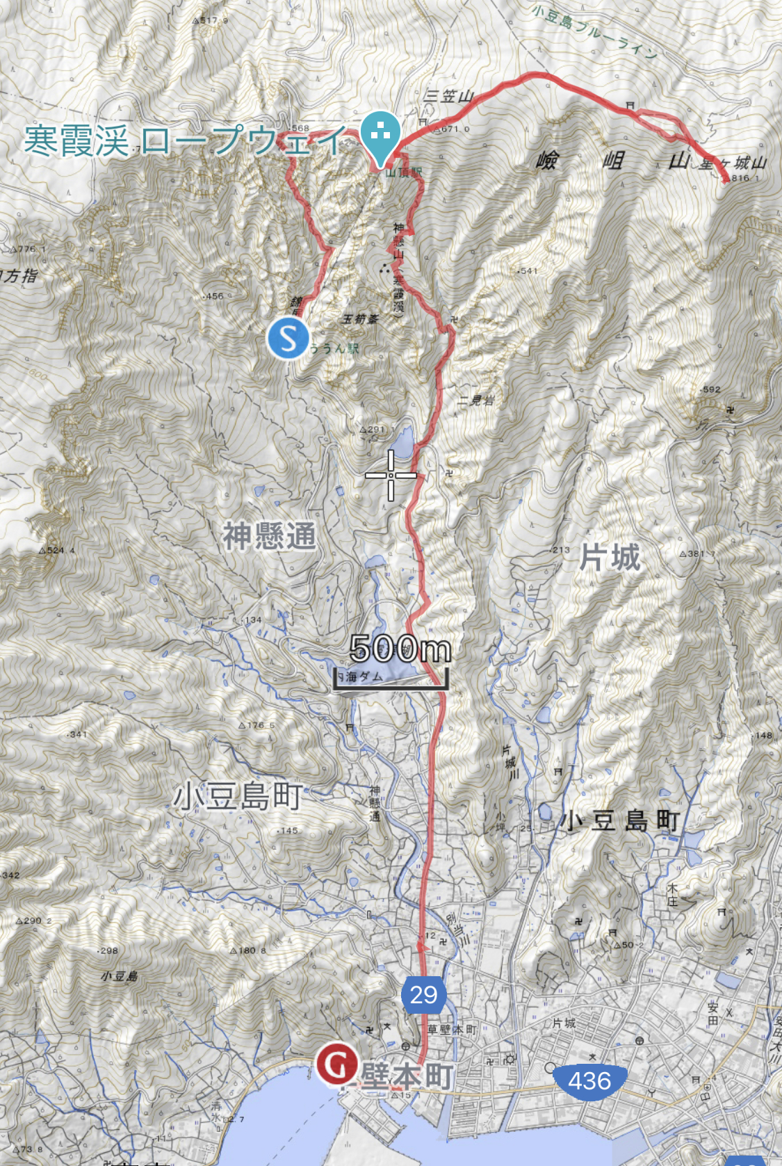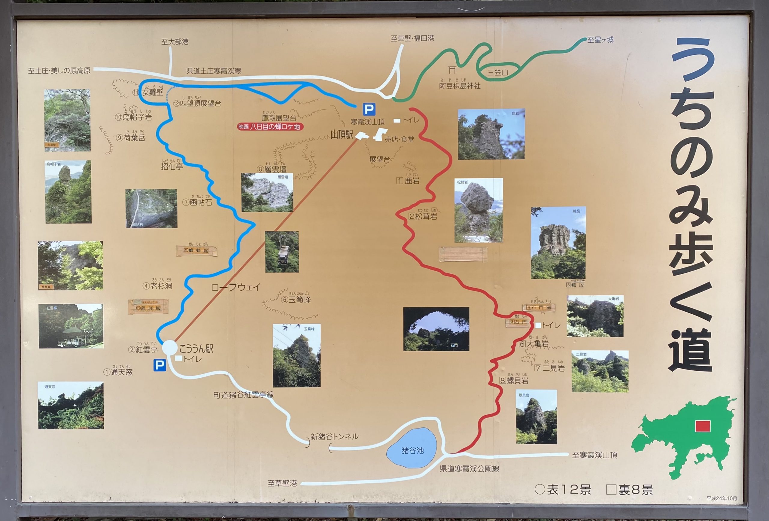 紅雲亭9:20〜10:30山頂駅広場10:35〜11:20星ケ城山(817m)11:50〜12:20山頂駅広場12:25〜13:00石門洞〜14:25草壁港