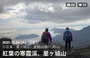 2020年11月24日に会員4名で小豆島の星ケ城山に登りました。