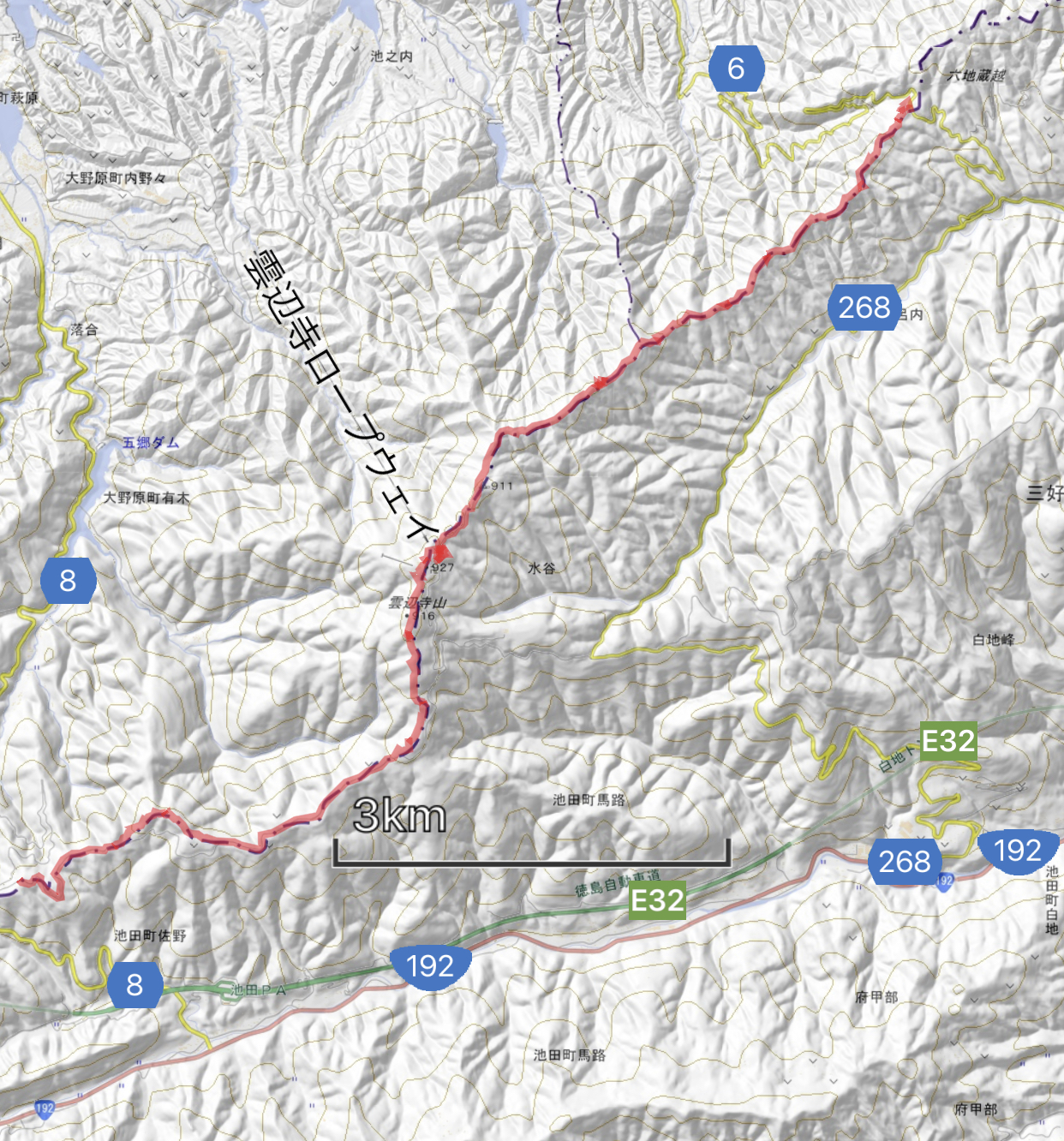 この路は、六十五番三角寺と六十六番雲辺寺を