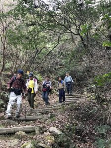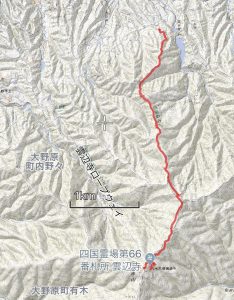 7:45高松を出発し、8:45粟井ダムの登山口に到着、8:00出発で四国の道を県境まで登りました。晴れ風もなく穏やか天候です。
