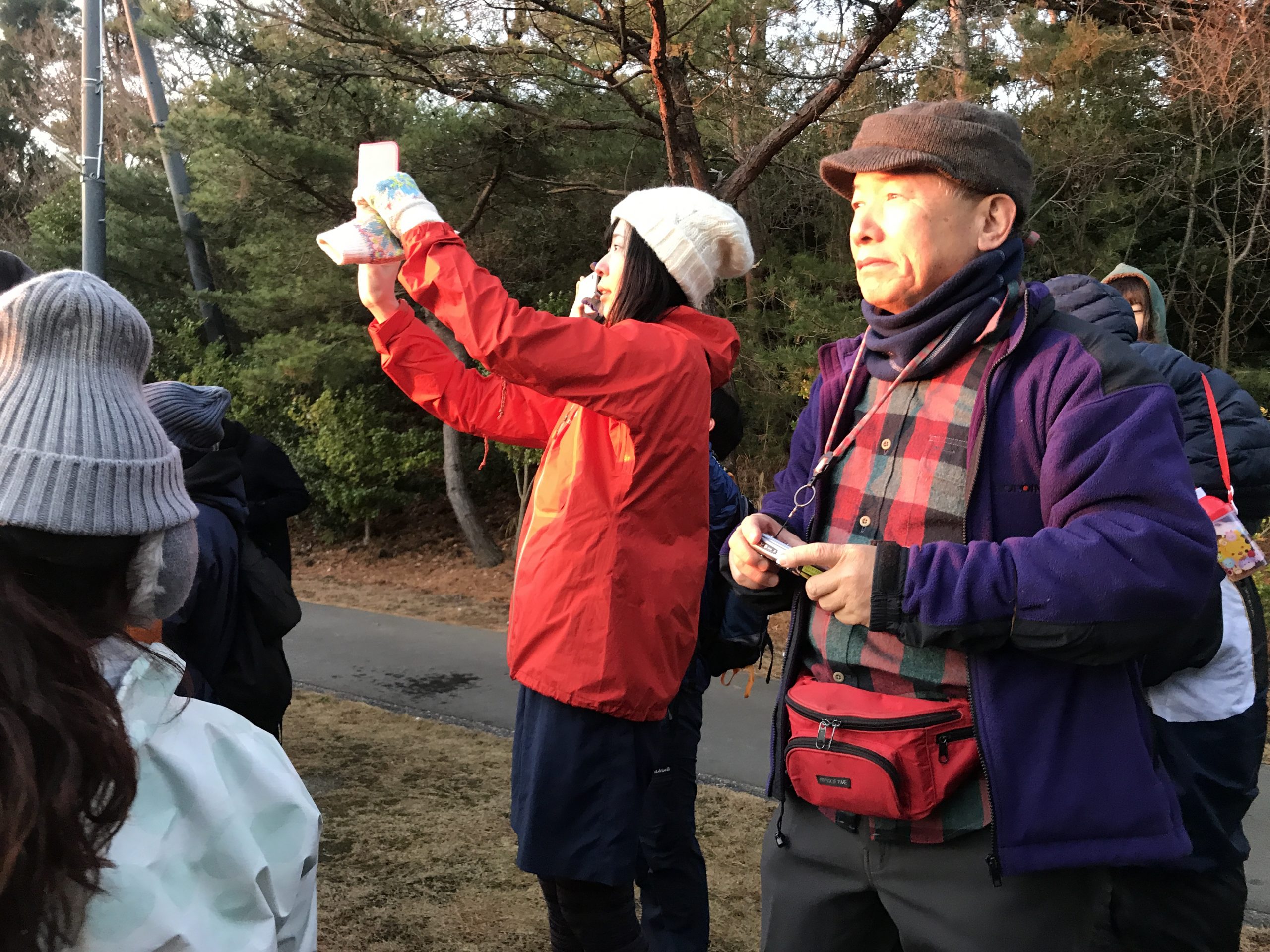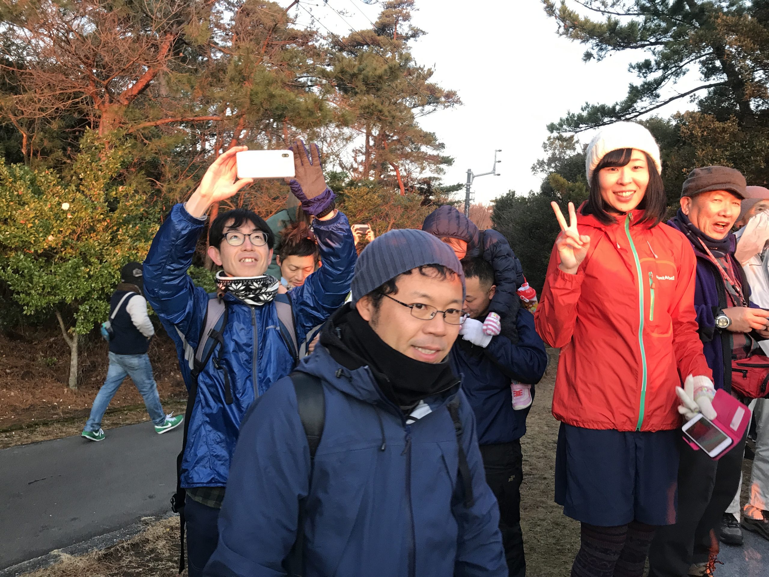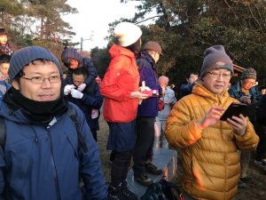 出来るだけ人を避けようと少し離れた休憩所に移動し、みんなでコーヒーを飲んで、日の出を待ちました。日の出近くなるとこちらにも集まって来ましたが、日の出を見ることが出来ました。