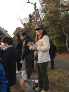 午前5時に旧屋島ケーブル駅駐車場に集合し、ヘッドライトを頼りに屋島小学校から四国の道を頂上の屋島寺まで登りました。