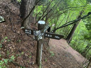 帰りは大生峠から車道に降り、車道を大滝山いこいの森まで歩きました。