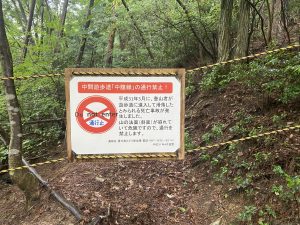 城が丸の少し先からは個人所有地で立入禁止の看板があり、見落とすと入ってしまいそうですが、引き返しました。