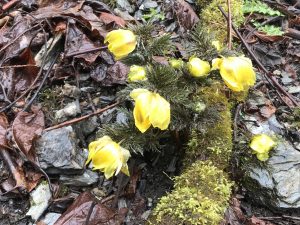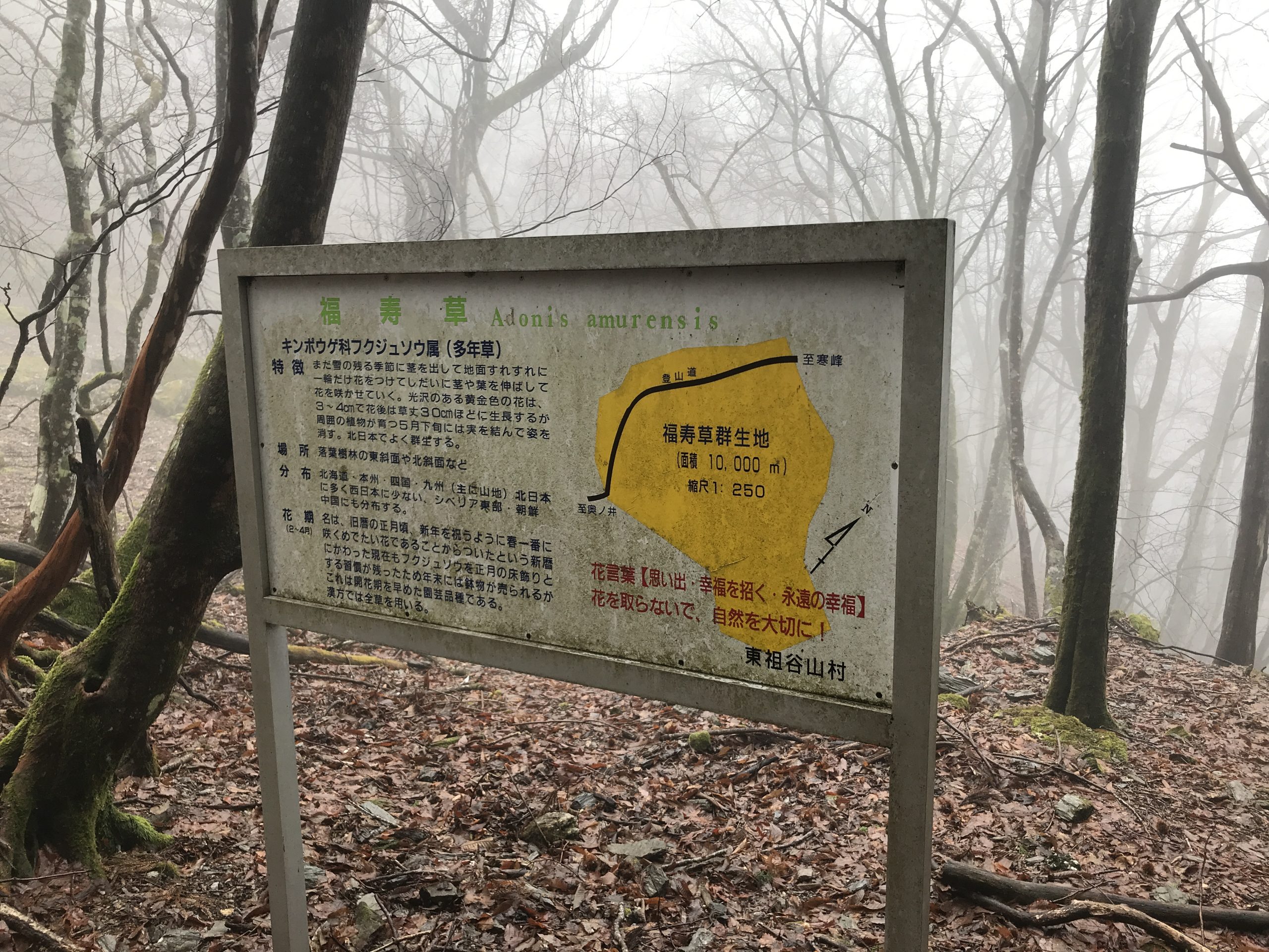 2020年3月8日 春を告げる花、福寿草を見に寒峰(徳島県)に会員8名(女性5名、男性3名)で登りました。