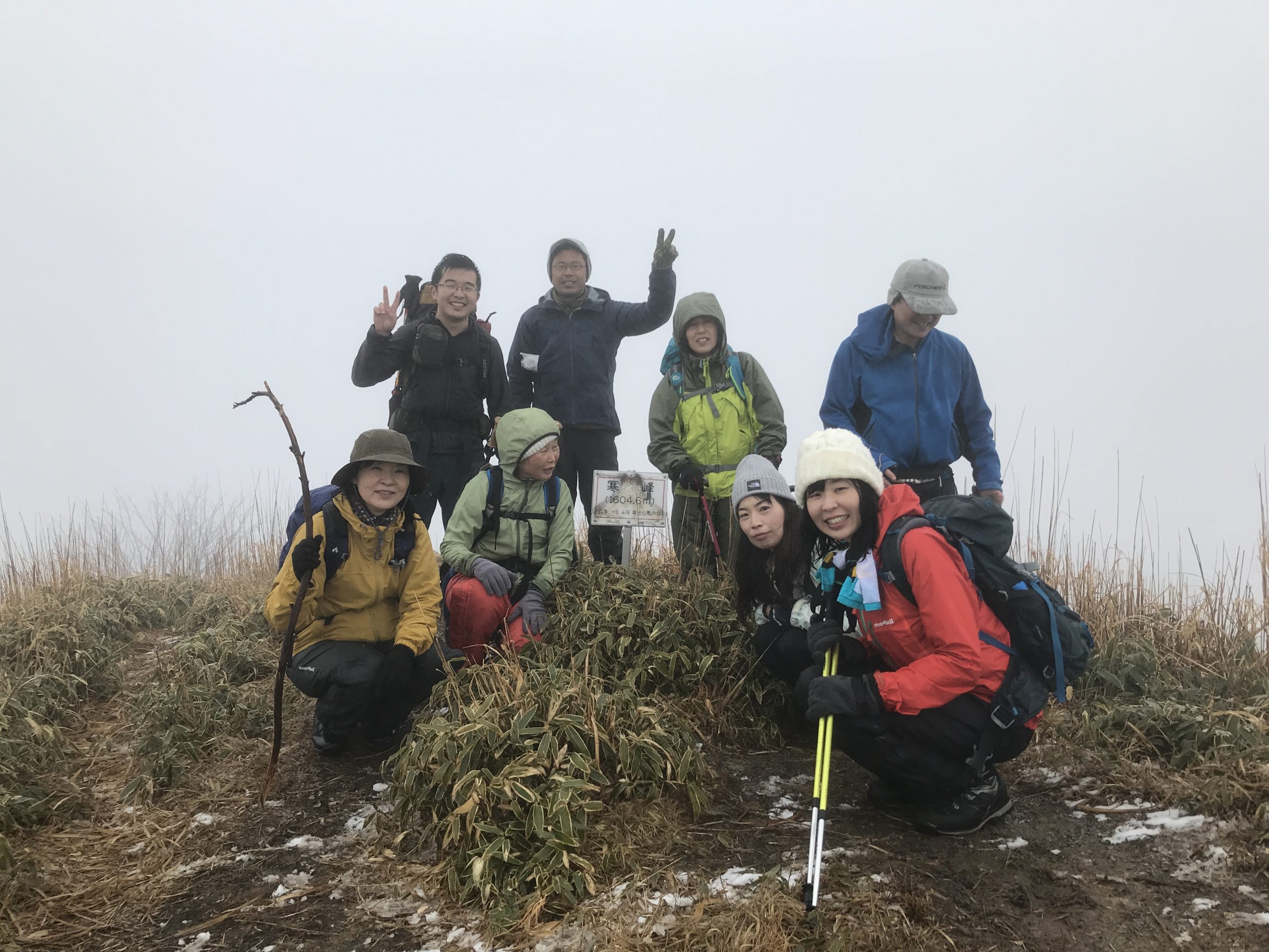 寒峰1,605m頂上は濃霧で残念ながら周りの山を展望することは出来ませんでした。
