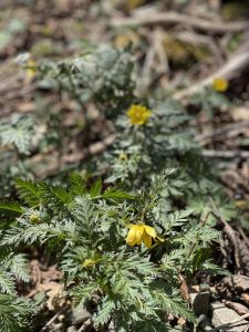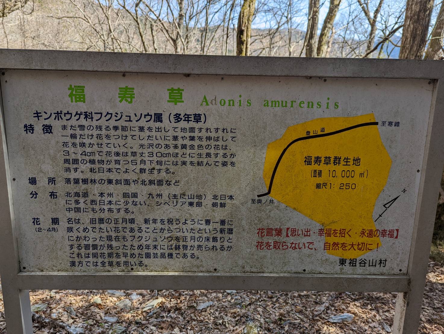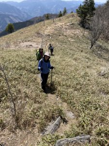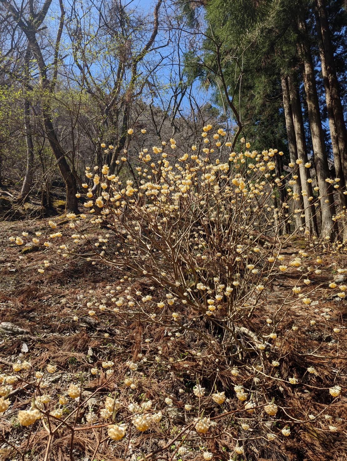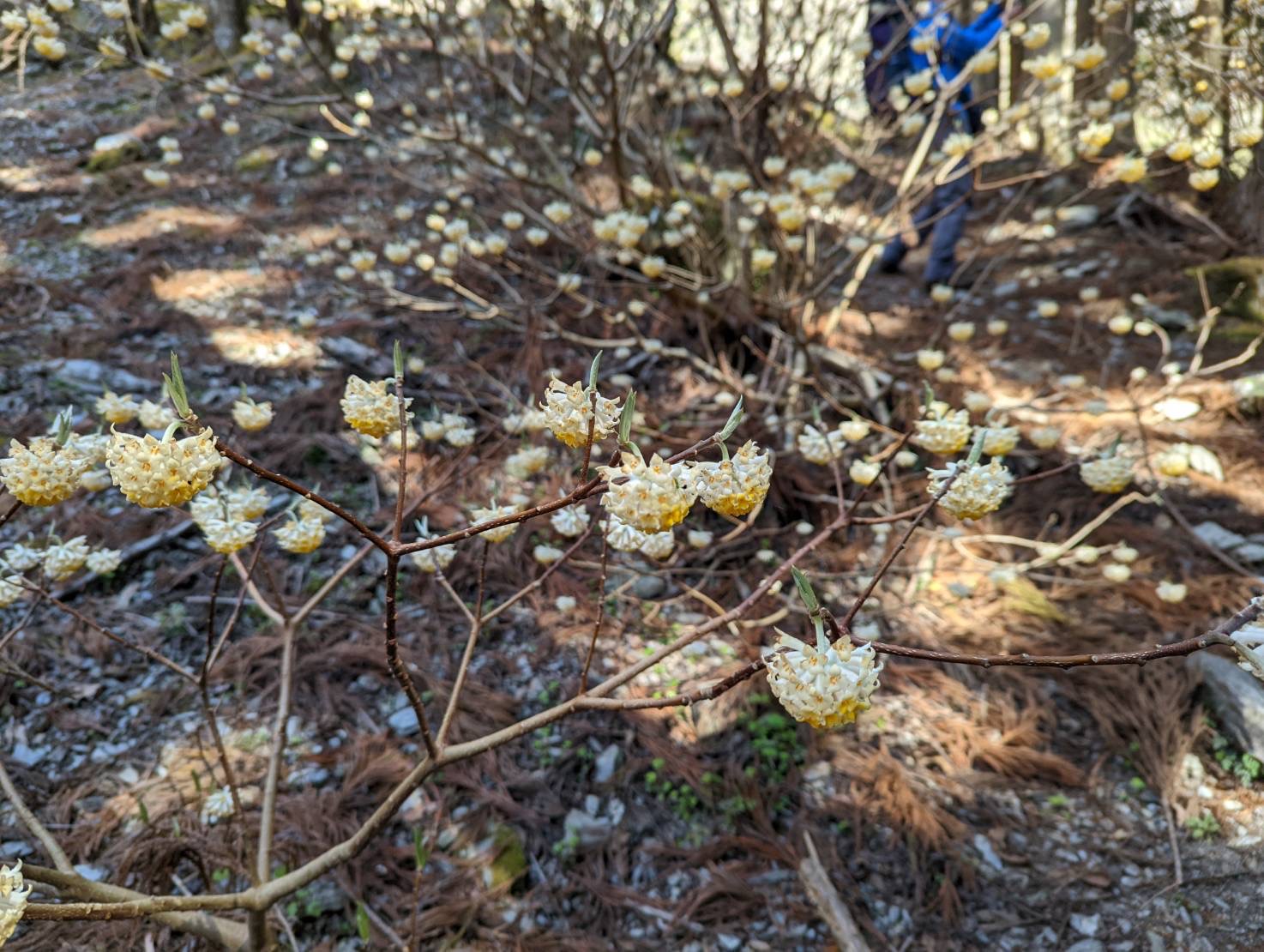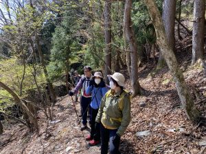 2022年4月17日(土)寒峰へ、福寿草らミツマタのお花を見に会員6名で登りました。