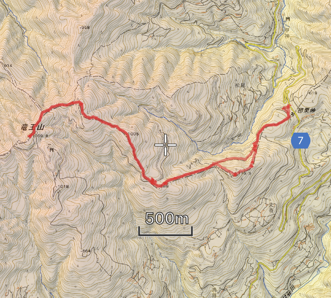 歩行距離は相栗峠から竜王山まで往復8.6kmでした。
