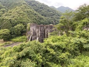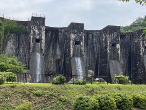 さらに下山途中にある放流中の「豊稔池(ダム)堰堤」(1930年)バットレス式と重力式を組み合わせた日本に2基だけのマルチプルアーチ式ダムを見学して帰りました。