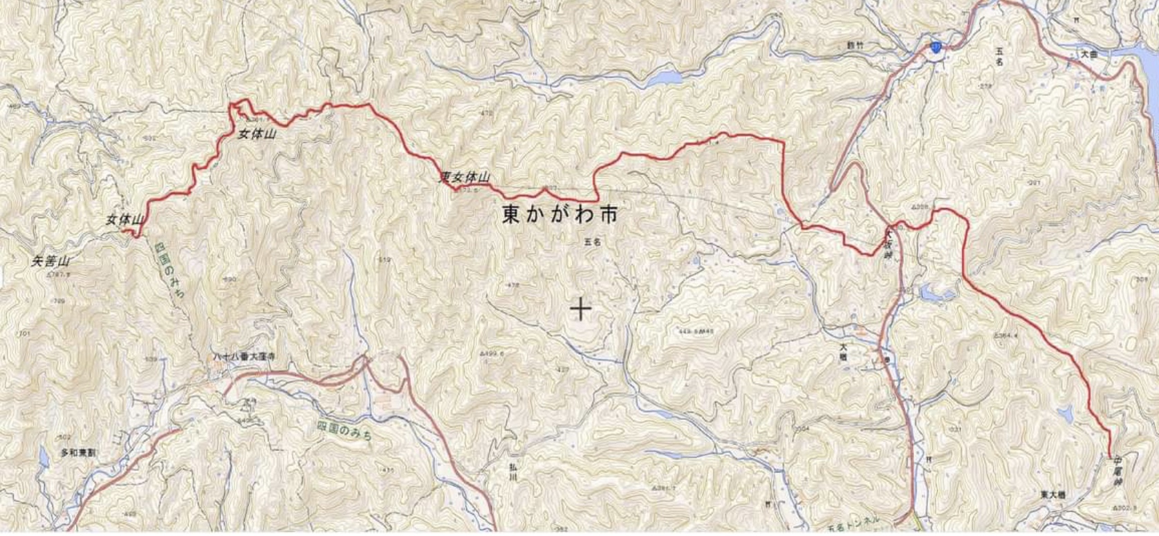 [コース]:女体山(長尾女体山)(761.7m)〜女体山展望台(寒川女体山)(761.7m)〜東女体山(673.6m)〜大坂峠(280.5m)〜中尾峠(240m)