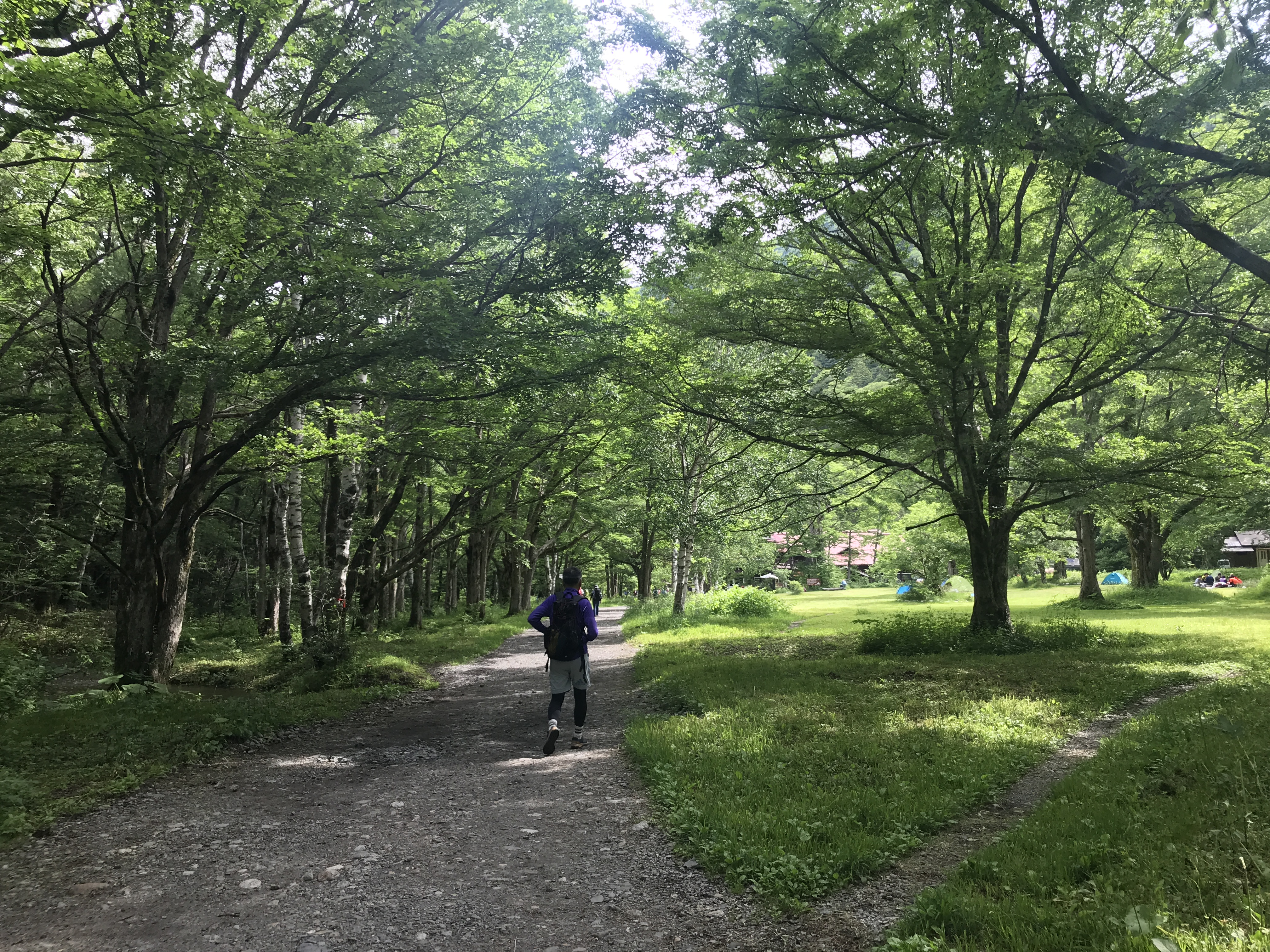 横尾で昼食後、上高地まで11kmの長いフラットなロードを3時間程歩きました。