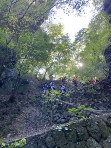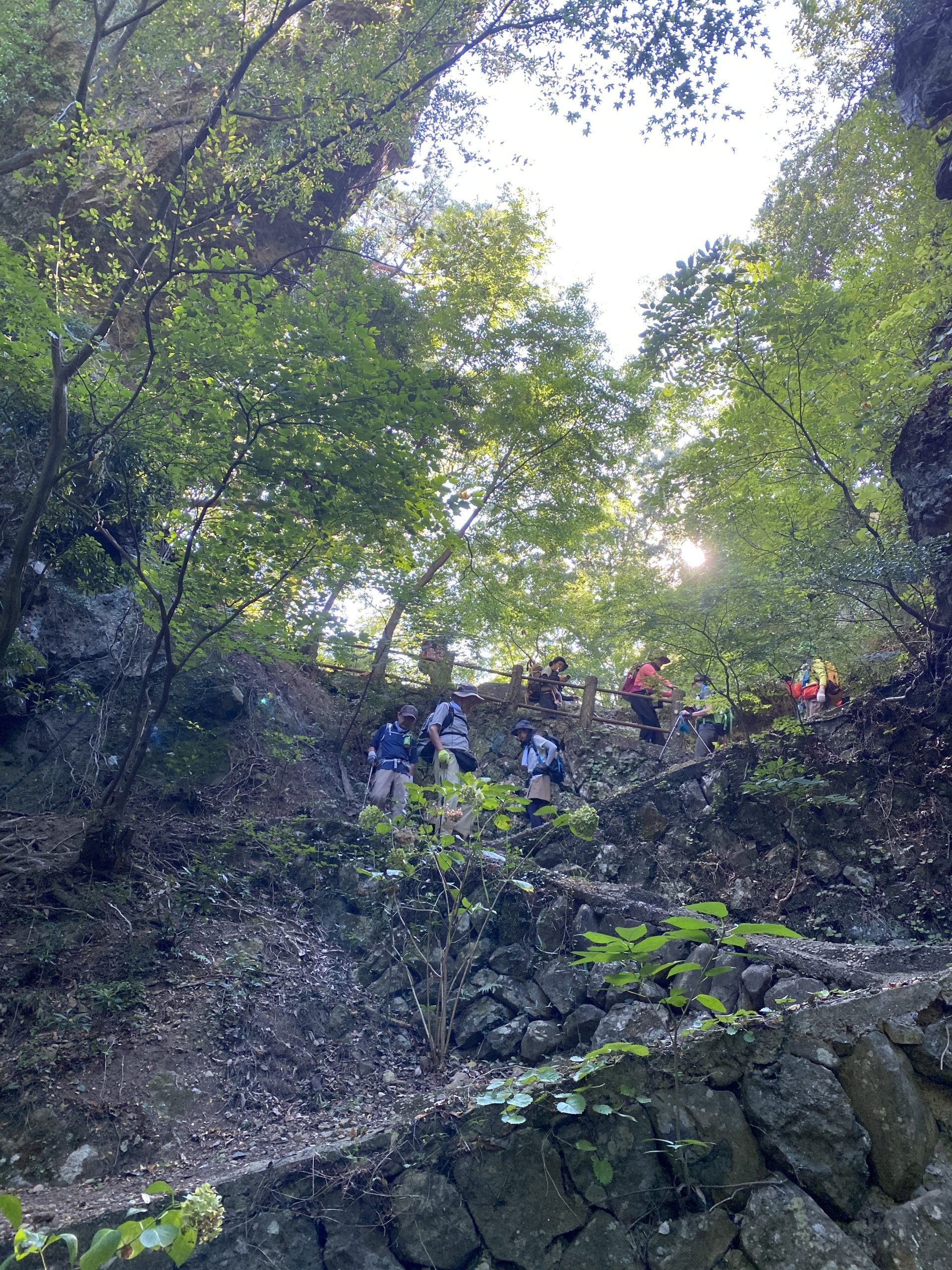 下山は、寒霞渓遊歩道・裏神懸線(裏八景)を石門を潜り石門洞や奇岩を観ながら内海ダムまで歩きました。