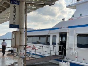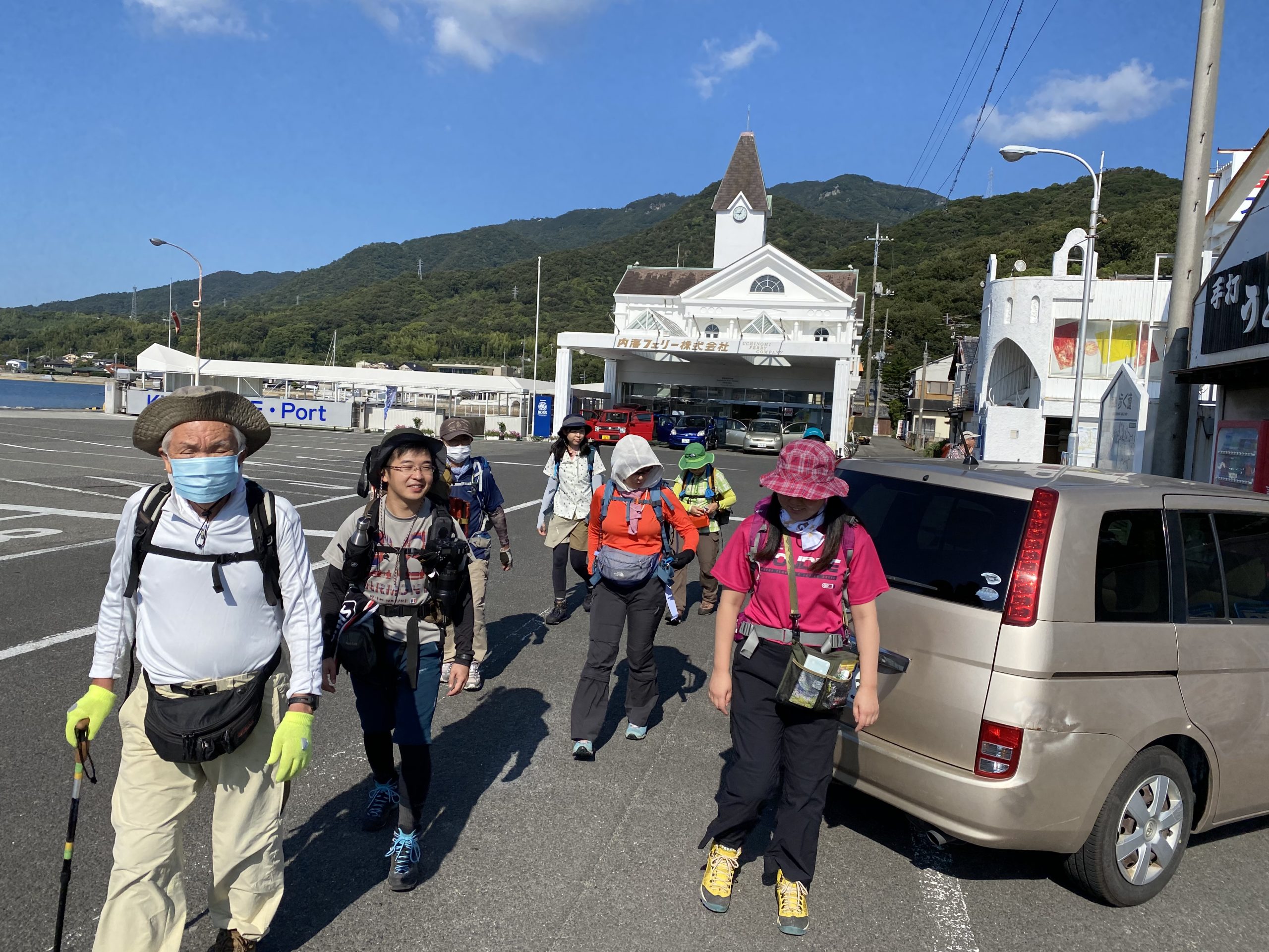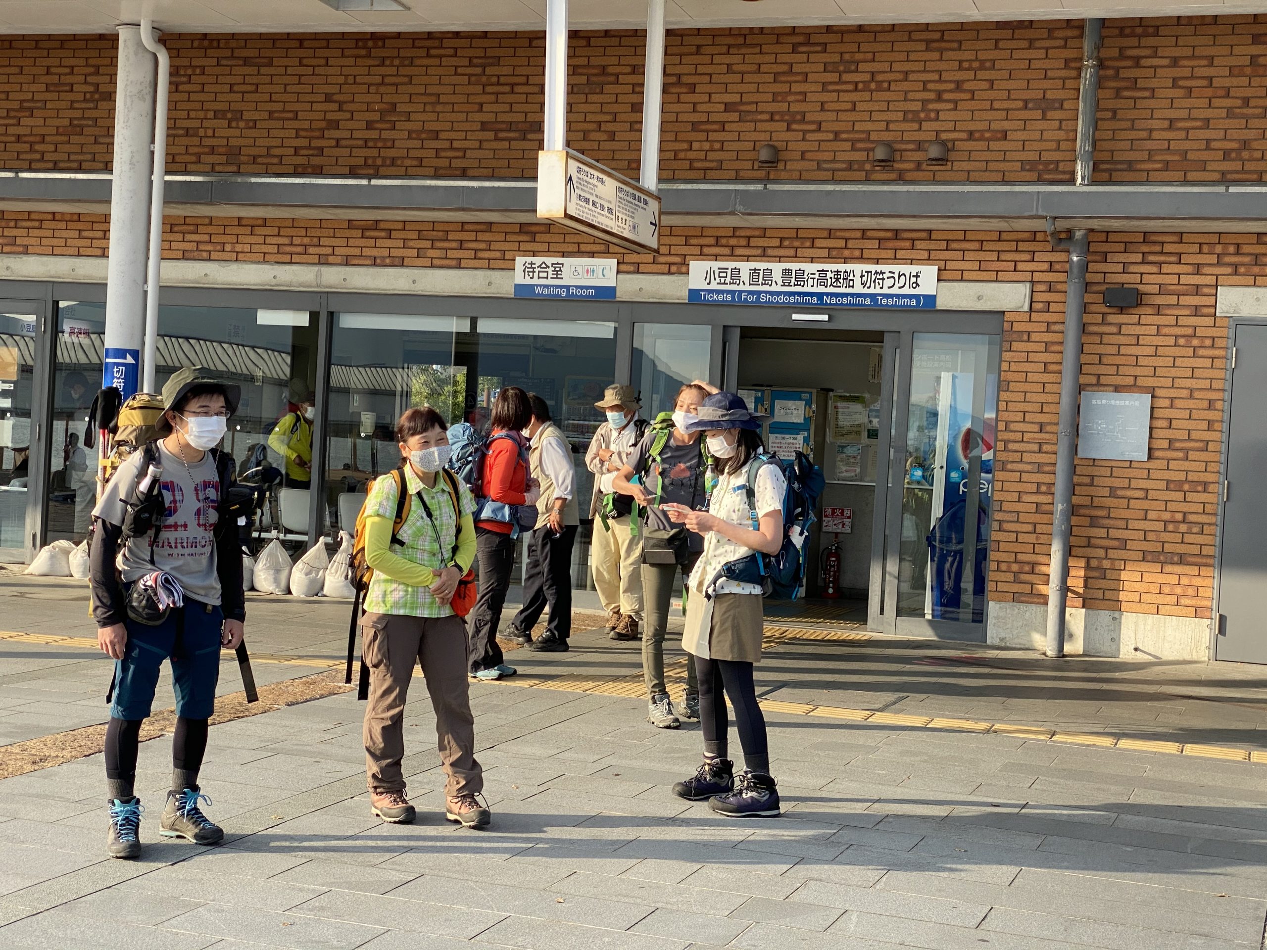 高松港の県営桟橋に9名が7:20集合し、7:40発の高速艇に乗船して土庄港には35分で到着。