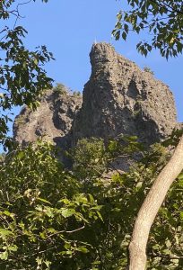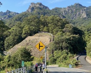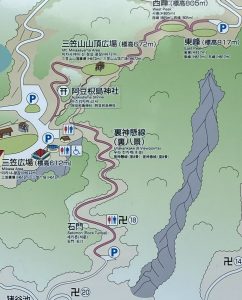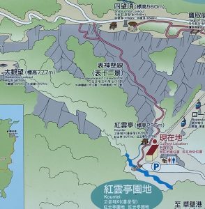 トイレ休憩後、奇岩の表十二景を観ながら四望頂(560m)まで登り、ロープウェイ駅がある三笠広場(612m)に12:00到着。
