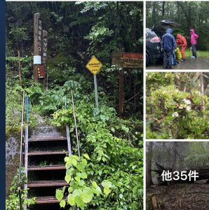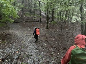 樹林限界までの登山道は雨水が川のように流れて渓流ようでした。