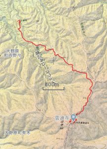 道の駅8:30=8:45大窪寺9:00〜10:30矢筈山[787m]〜11:20女体山[774m]〜12:00寒川女体山[761.7m]12:30〜(林道経由)〜14:00大窪寺