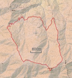 今回は中通の随神門から大川山へ登り中寺廃寺跡で史跡を周って江畑に降るルートです。
