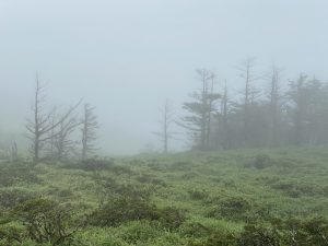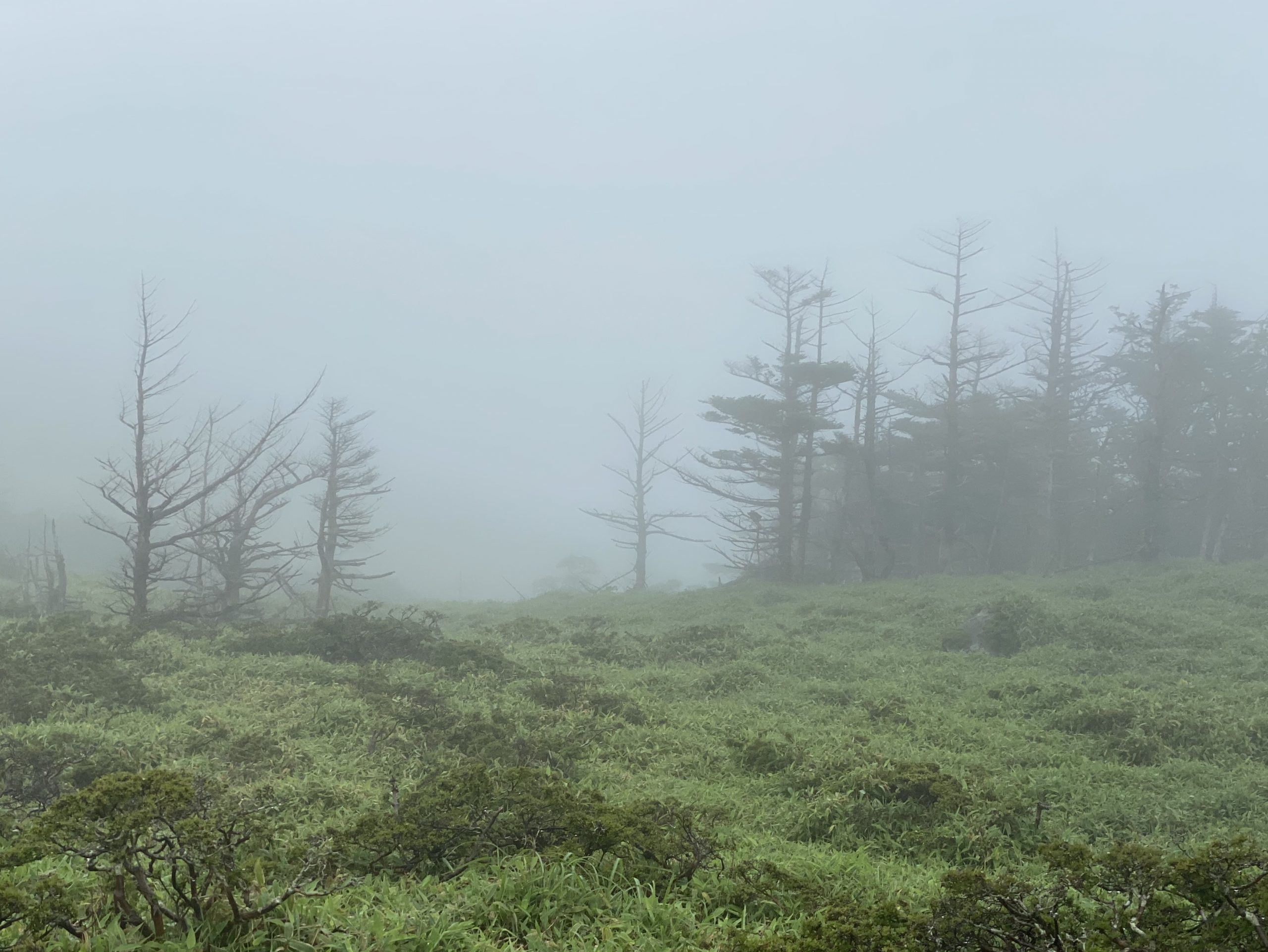 樹林限界からは川の流れは収まりましたが、雨雲の中に入り景色は見ることが出来ませんでした。