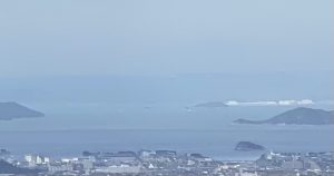 天気が良く瀬戸内海の向こう岡山の山並みを見ることができました。