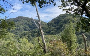 今から行く手間の小高見峰と奥に大高見峰が見えます。