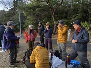 その後、あけぼの山の会と山歩会が一緒に記念撮影を撮り、あけぼの山の会は先に14:00出発。